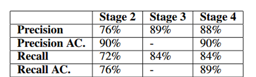 在每次测试中人类评估人员将评估LLM的输出为“真”、“假”。因此,可以计算出准确率、召回率和F1分数。在第2阶段和第4阶段,还引入了另一个标准“可接受”。“可接受的”一词意味着,尽管LLM输出和手动处理的文本之间可能存在差异,但答案仍然可以被视为正确,并将被添加到真阳性中。在现实问题中,这可能会出现2个以上看似正确的答案,有多个可接受的答案。