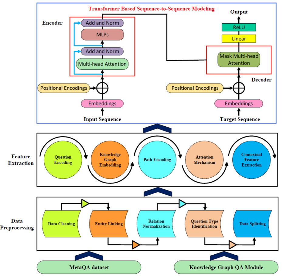 - Data Preprocessing:将原始问答数据(MetaQA 数据集)转化为模型可理解的形式,特别是去除人工标记模式、增强模型的实体识别与泛化能力。