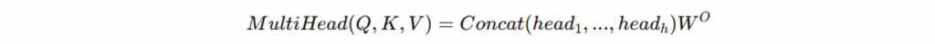 多头注意力机制(Multi-Head Attention):将 Q、K、V 划分为 h 个子空间(heads),实现并行注意力计算,增强模型捕获不同语义特征的能力。