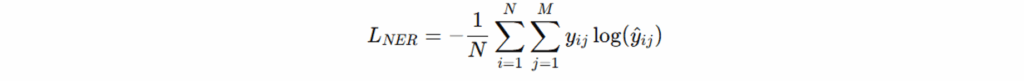 命名实体识别损失(NER Loss)用于衡量实体标签预测与真实标签之间的差异;本质为负对数似然(交叉熵损失)。