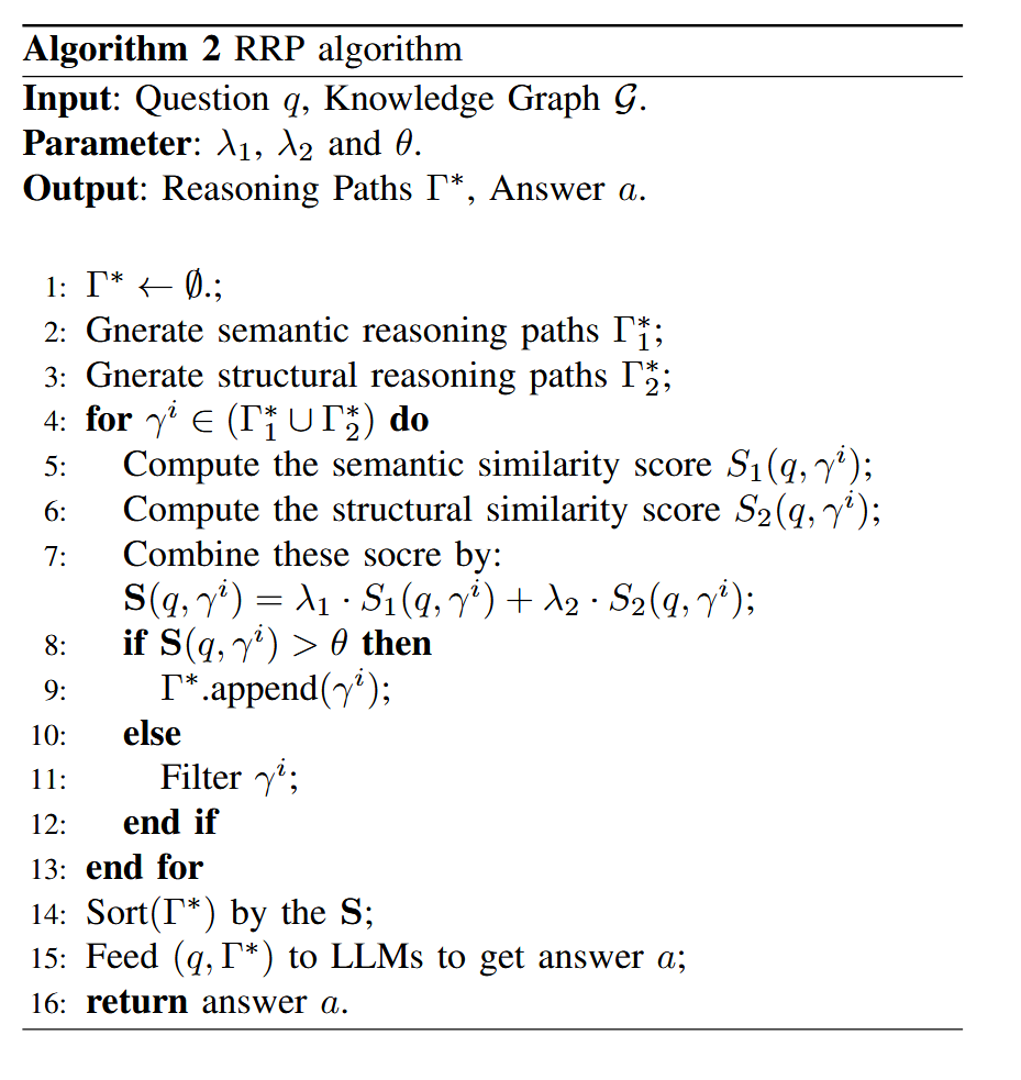 1. 提出了 RRP,一个结合了 LLM 的知识图谱增强推理系统。RRP 有效地结合了LLM 的语言能力以及双向学习编码器提供的丰富结构信息,保证了推理的广度和精度,大大提高了推理质量。