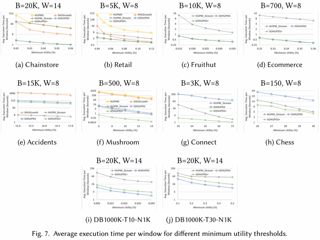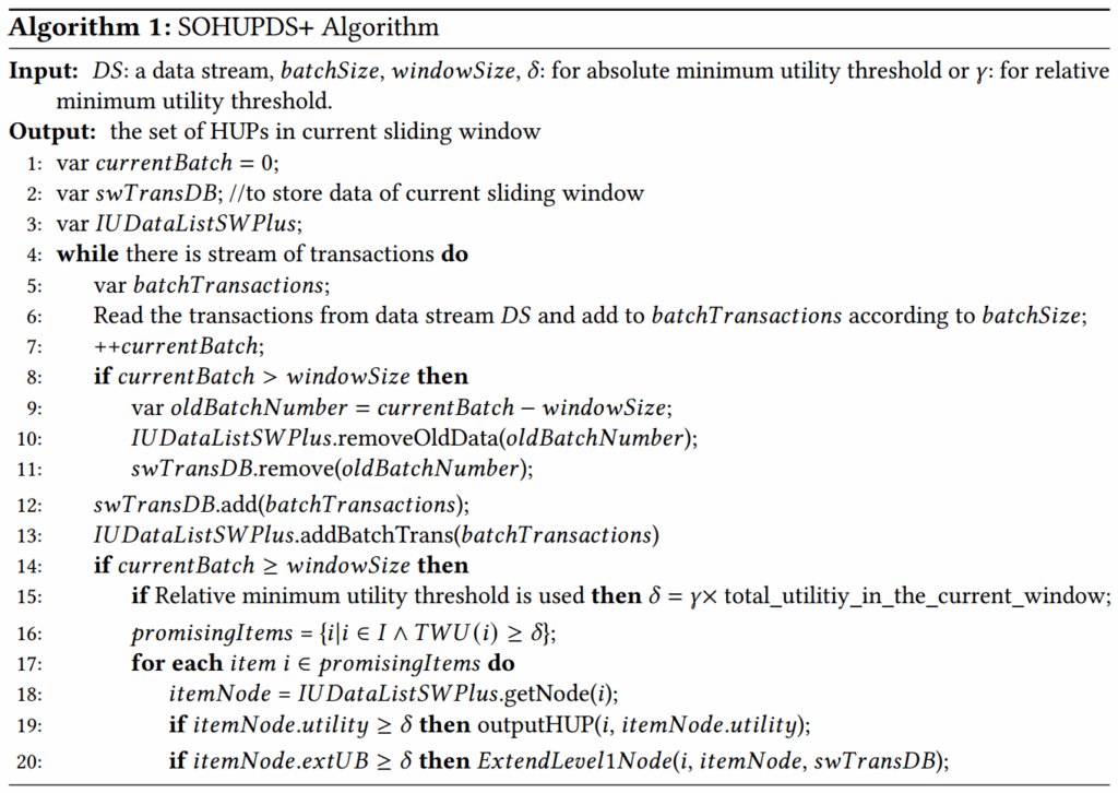 - 提出的SOHUPDS+,用于在数据流的当前滑动窗口中挖掘具有绝对或相对最小效用阈值的高效用项集