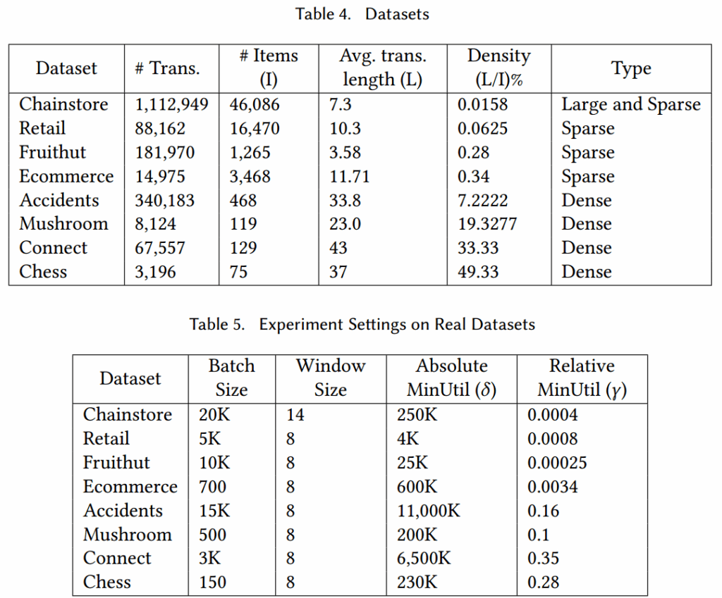 - 对比了提出的SOHUPDS和SOHUPDS+在稀疏型和密集型真实数据集的有效性和效率,并与最先进的算法进行比较