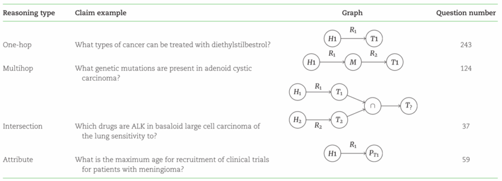 基于这个强大的知识图谱,我们构建了生物医学领域首个知识图谱问答基准——PcQA。如表所示,我们设计了四种类型的任务来全面评估模型能力: