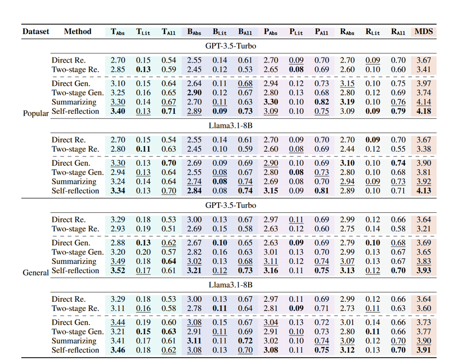 人工评估:历史专业学生对生成结果排序(Fleiss’s κ=0.97,高一致性)。