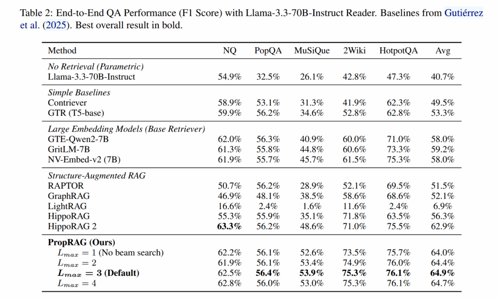 3. 实验证明 PropRAG 在多个数据集上获得了 SOTA 水平