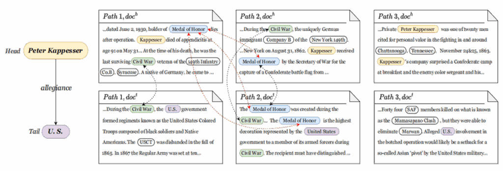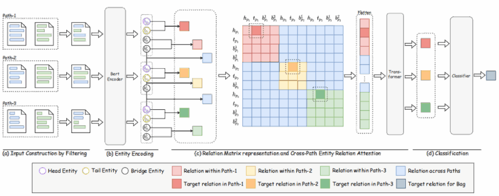 通过 跨路径实体关系注意力 建模多文本路径间的依赖关系,在 CodRED 数据集上实现性能显著提升。