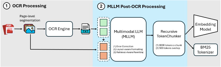 1.将MLLM用于面向混合检索的OCR后处理,而非通用文本修复;