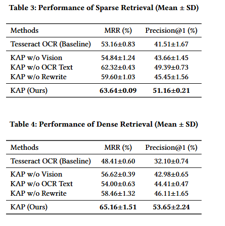 KAP w/o OCR Text:仅用图像,让MLLM从头提取;