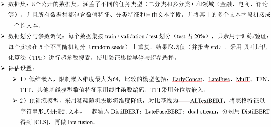 低维嵌入:即使在参数量相当的情况下,TTT的架构(整体注意力、分位数嵌入)比现有MulTi、LateFuse等架构优秀。