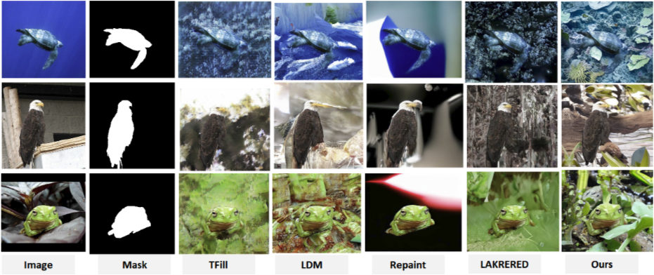 构建伪装环境孪生: 借鉴论文中 Mask 引导的 Out-painting 逻辑,反向利用该技术构建“数字孪生训练场”。即:固定车辆的迷彩纹理(作为控制条件),利用生成模型反推最适合该迷彩的“背景环境”。这将极大地扩充数据的多样性,实现“车适环境”与“环境适车”的双向生成闭环,为训练高鲁棒性的检测模型提供完备的“分布孪生”数据支持。