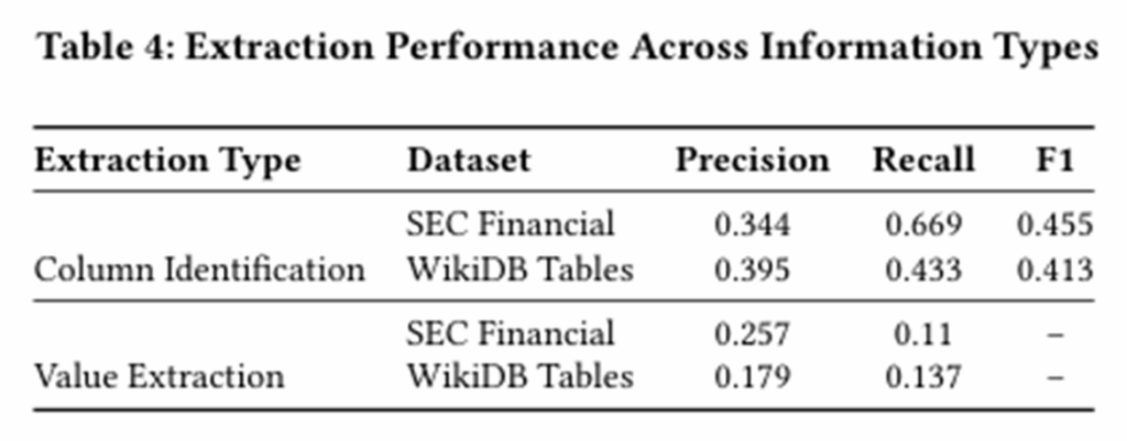 (1)列名识别的F1分数低,即模型很难准确识别出这应该填入表格哪一列