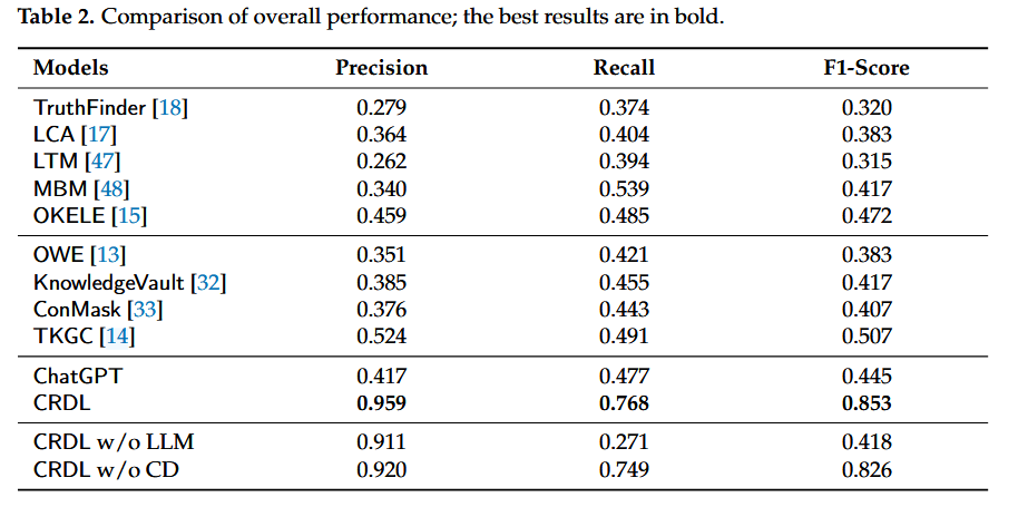 2.提出基于关系类型的自适应冲突检测机制。首次显式地在冲突消解框架中引入冲突检测步骤,并根据关系类型(1-to-1 vs Non-1-to-1)动态调整解决策略。