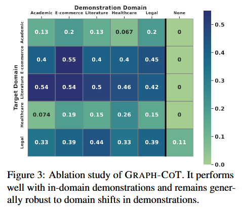 - 本文的实验非常详尽,基本上对方方面面都有考察。但是从实验数据可以发现,Graph-CoT 的总成绩仍然是不好的。在所有领域上,Graph-CoT 的正确率都低于 50%,而且正确率随着难度提升下降极快。比如 Graph-CoT 在健康领域的难题中回答正确率为 0。